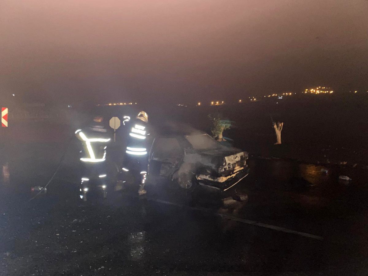 Alevler, itfaiye grupları tarafından denetim altına alınırken araç hurdaya döndü.