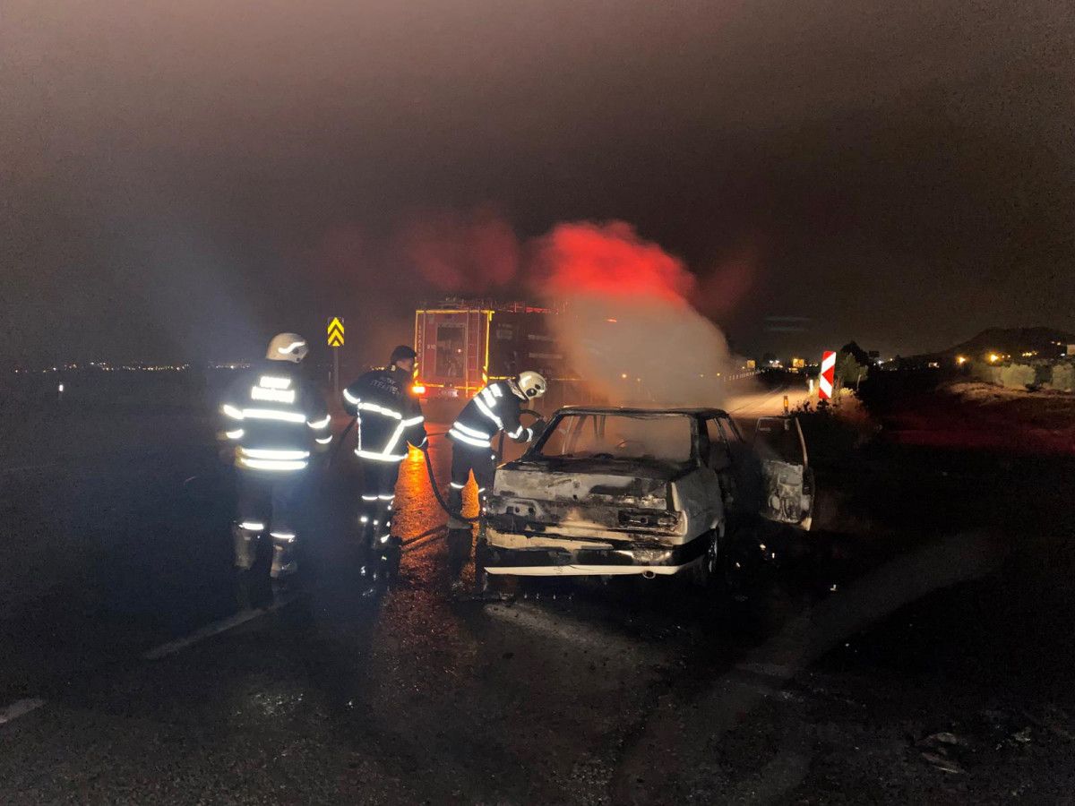 Kırıkhan ilçesi Saylak Mahallesi’nde seyir halinde olan Tofaş marka araba, alevlere teslim oldu.