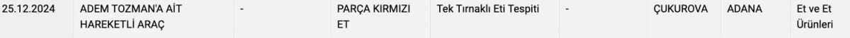 “Sağlığı Tehlikeye Düşürecek Gıdalar” listesine Adana Çukurova’da, hareketli araçta parça kırmızı ette tek tırnaklı eti tespit edildi.