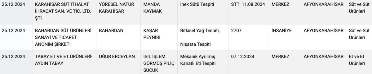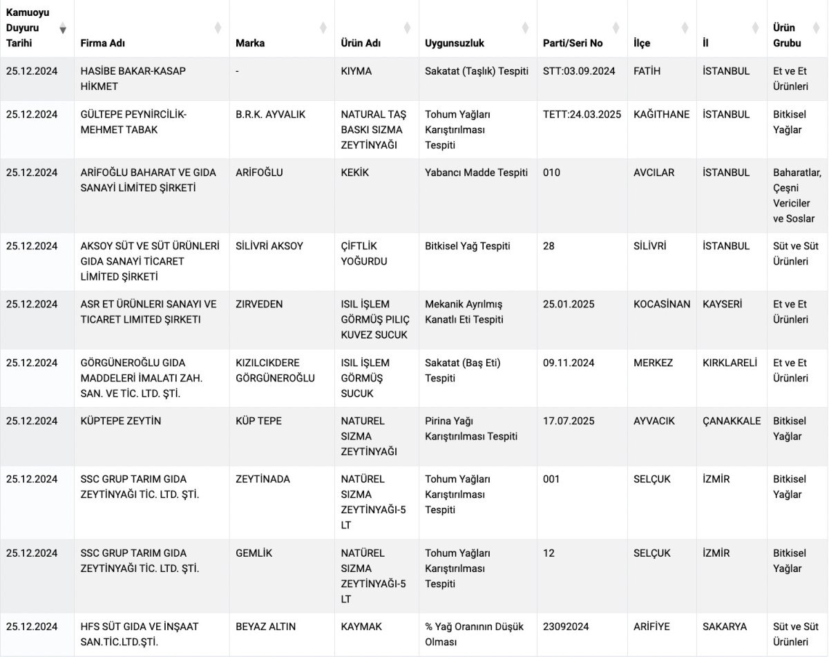 Denetimler ve incelemeler devam ettikçe Türkiye’nin dört bir yanından listeye giren ürün ve şehir sayısı artıyor.