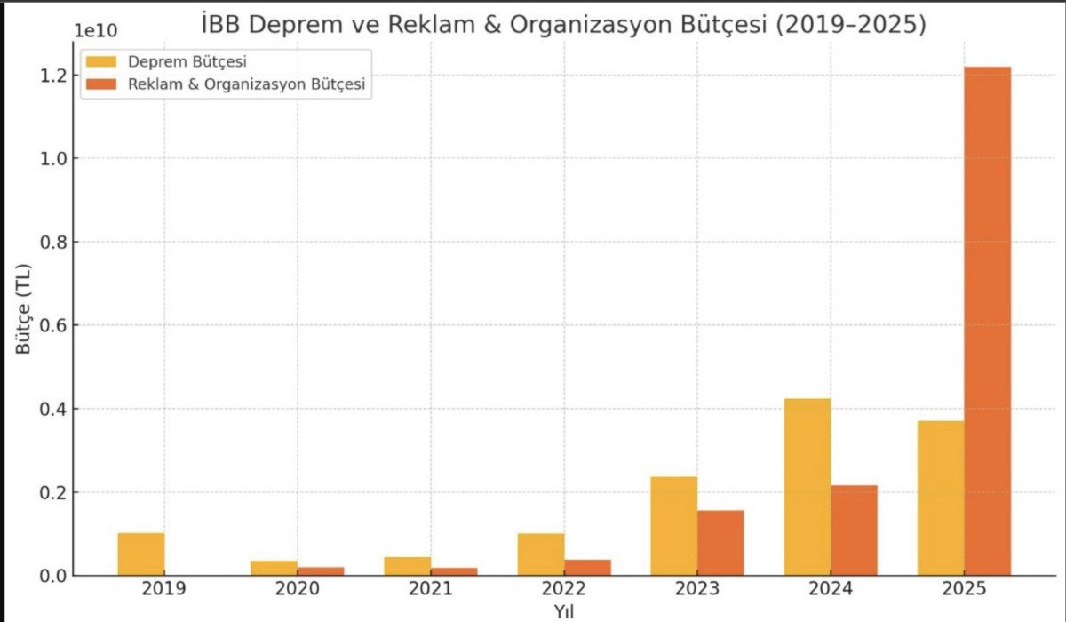 Bu tartışmalar arasında İBB’nin bu dönemde deprem hazırlık bütçesi ve reklam bütçelerinin karşılaştırıldığı bir grafik ortaya çıktı.