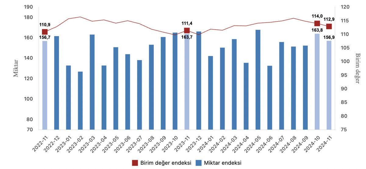 Türkiye İstatistik Kurumu (TÜİK), Kasım 2024 dönemine ilişkin dış ticaret endekslerini yayımladı.