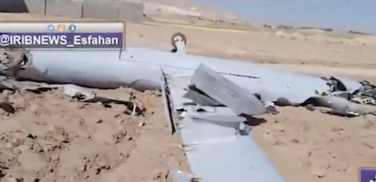 İran devlet televizyonu, İsfahan bölgesinde İran güçleri tarafından düşürülen İsrail’e ilişkin bir İHA’nın imgelerini yayınladı.