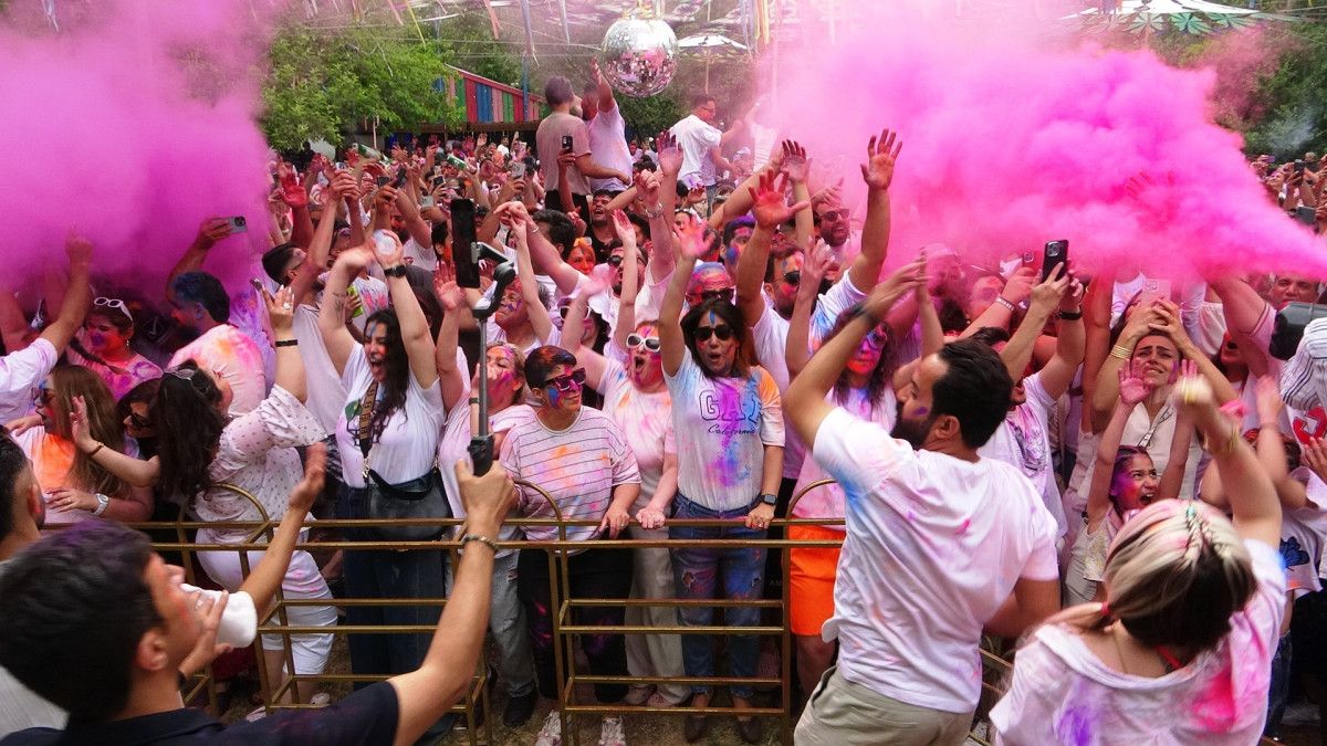 Gevaş ilçesinde düzenlenen şenlikte rengarenk hale gelen İranlılar, daha sonra Van Gölü’nün serin sularına kendilerine bıraktı.
