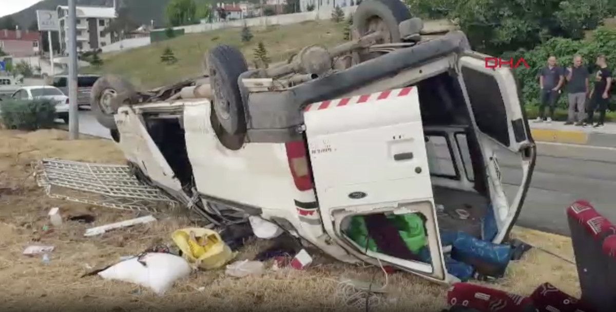 Çarpışmanın tesiriyle minibüs, aykırı döndü.