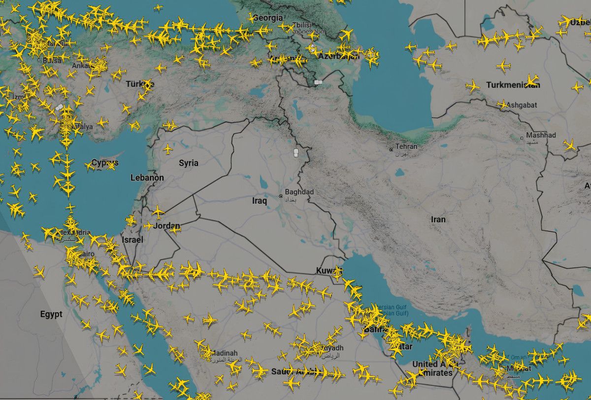 Uçuş takip sistemlerinden elde edilen bilgilere nazaran, İran hava alanı büsbütün boş kaldı.