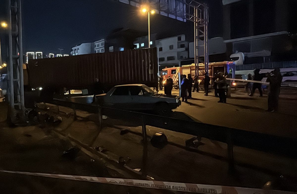 İstanbul’un Beylikdüzü ilçesi Yakuplu Mahallesi’nde Ambarlı Limanı’na seyir halinde olan tır, bariyerleri aşarak karşı şeride geçip araba ile motosiklete çarptı.