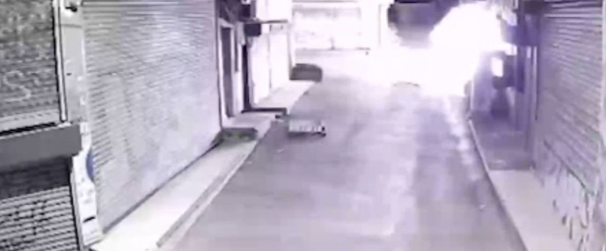 Öte yandan patlama anı etraftaki güvenlik kameralarına yansıdı.