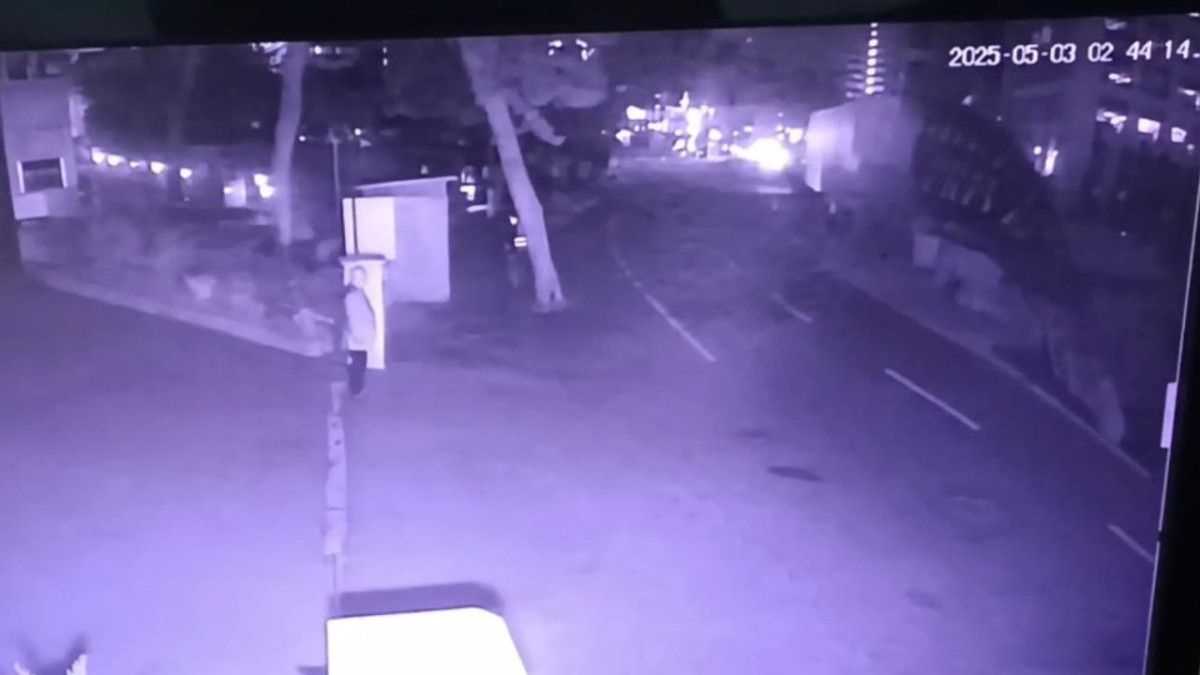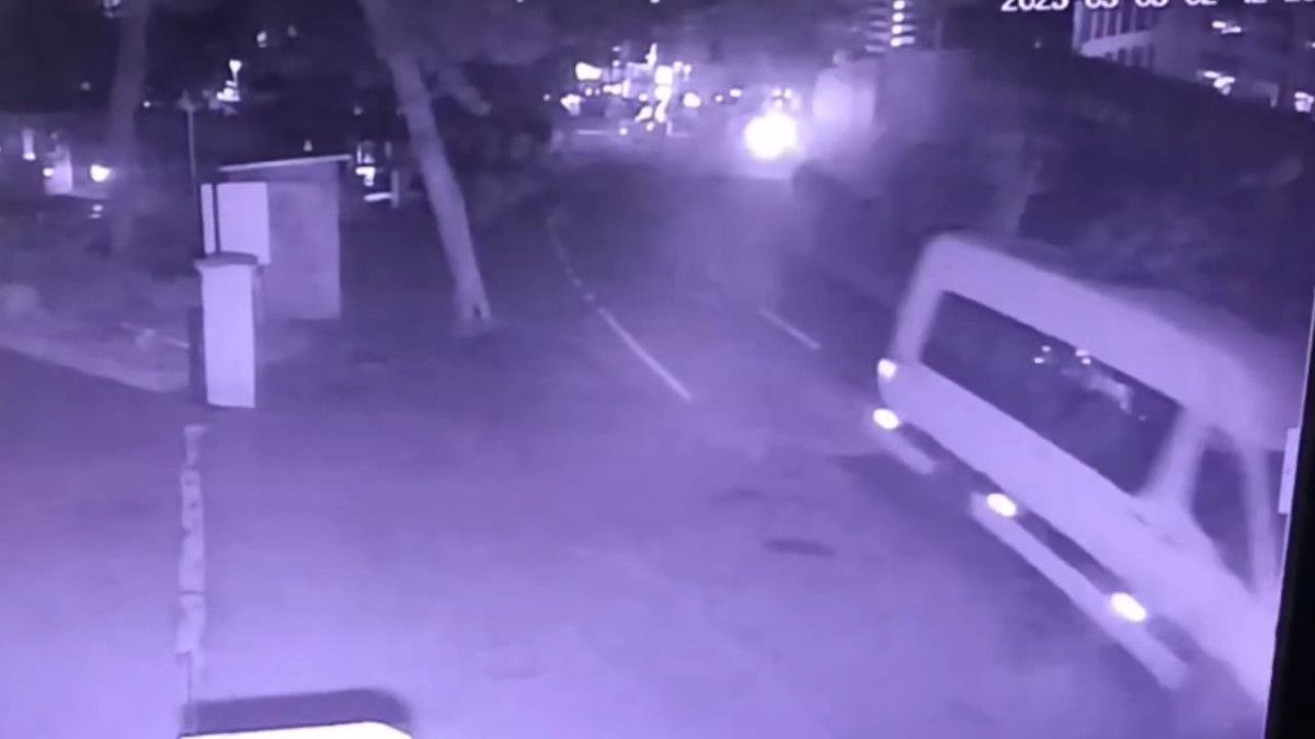 Öte yandan yolun çöktüğü anlar, güvenlik kamerasına yansıdı.