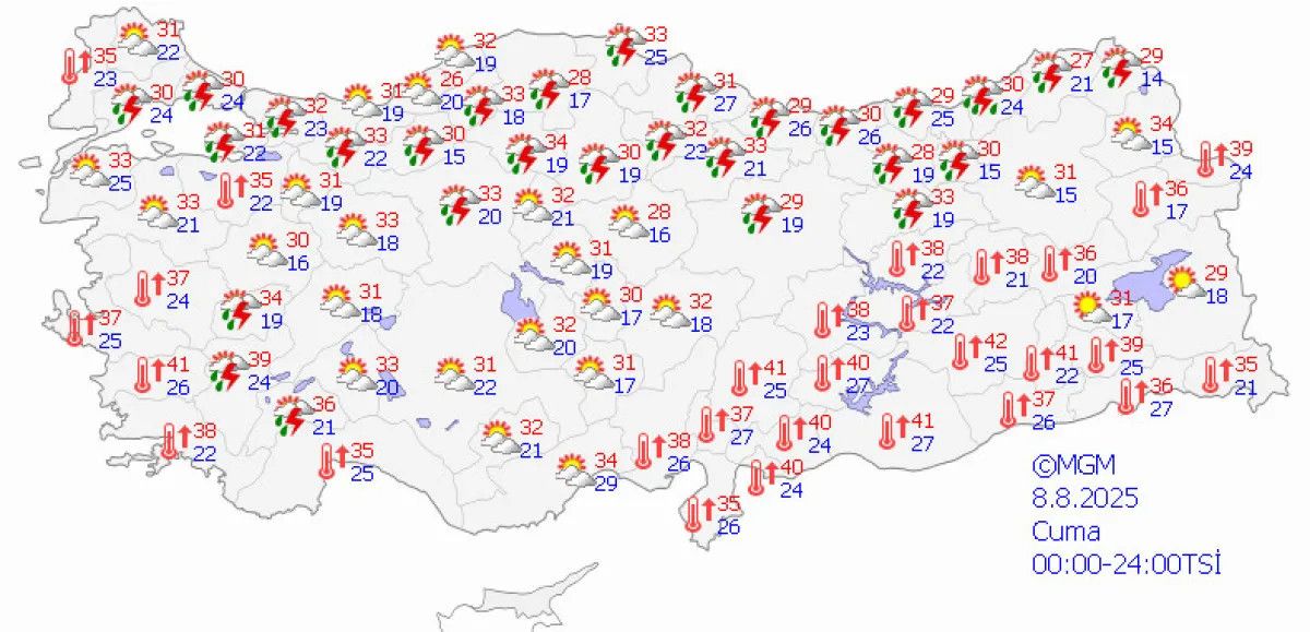 Sıcaklıkların 29-32 derece aralığında seyrettiği kentte, gök gürültülü sağanak yağışların cuma öğlen saatlerine kadar sürmesi öngörülüyor.