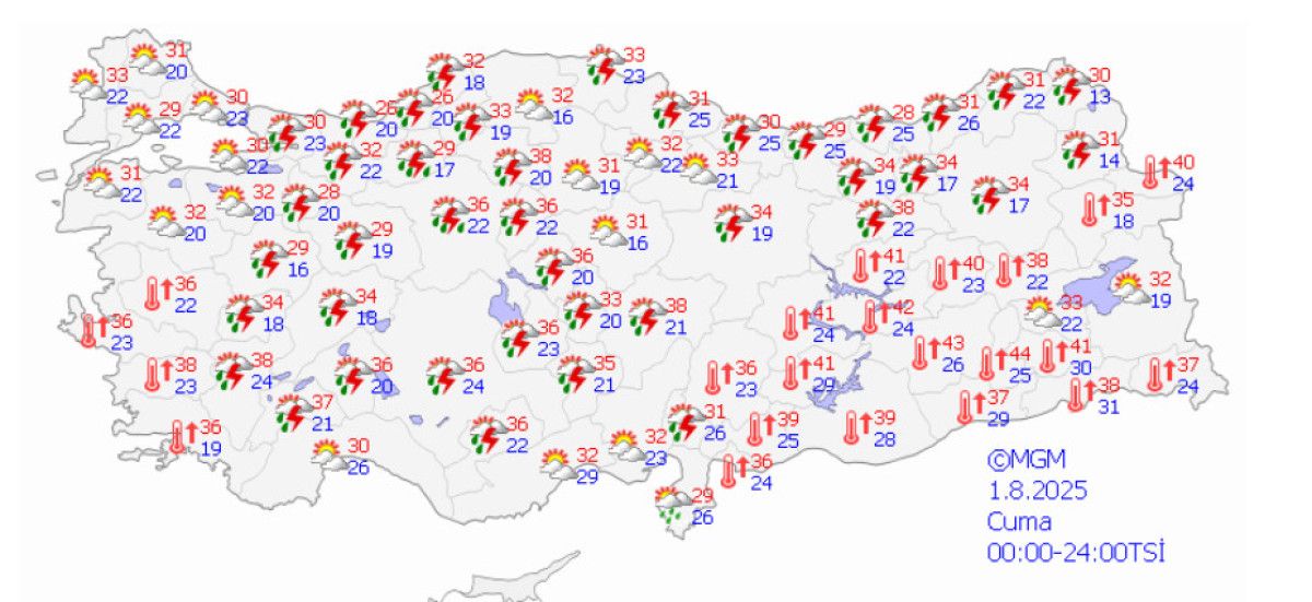 1 Ağustos(yarın) itibariyle önümüzdeki dört gün boyunca Türkiye’nin kuzey, iç ve doğu kesitlerinde yer yer sağanak ve gök gürültülü sağanak yağışlar tesirli olacak.