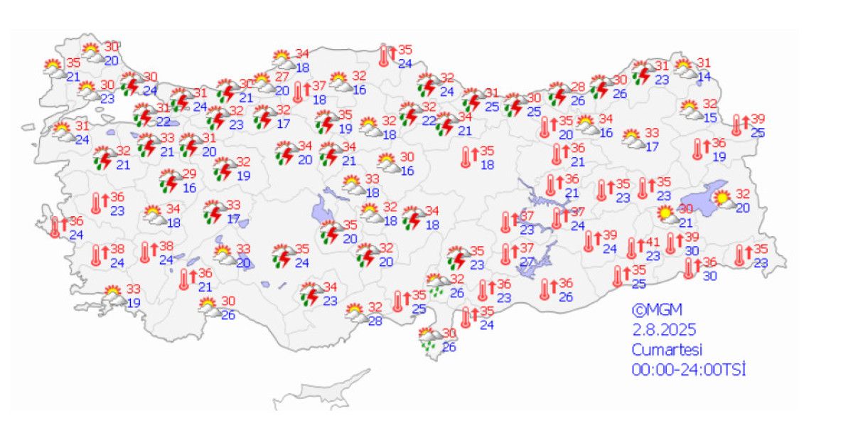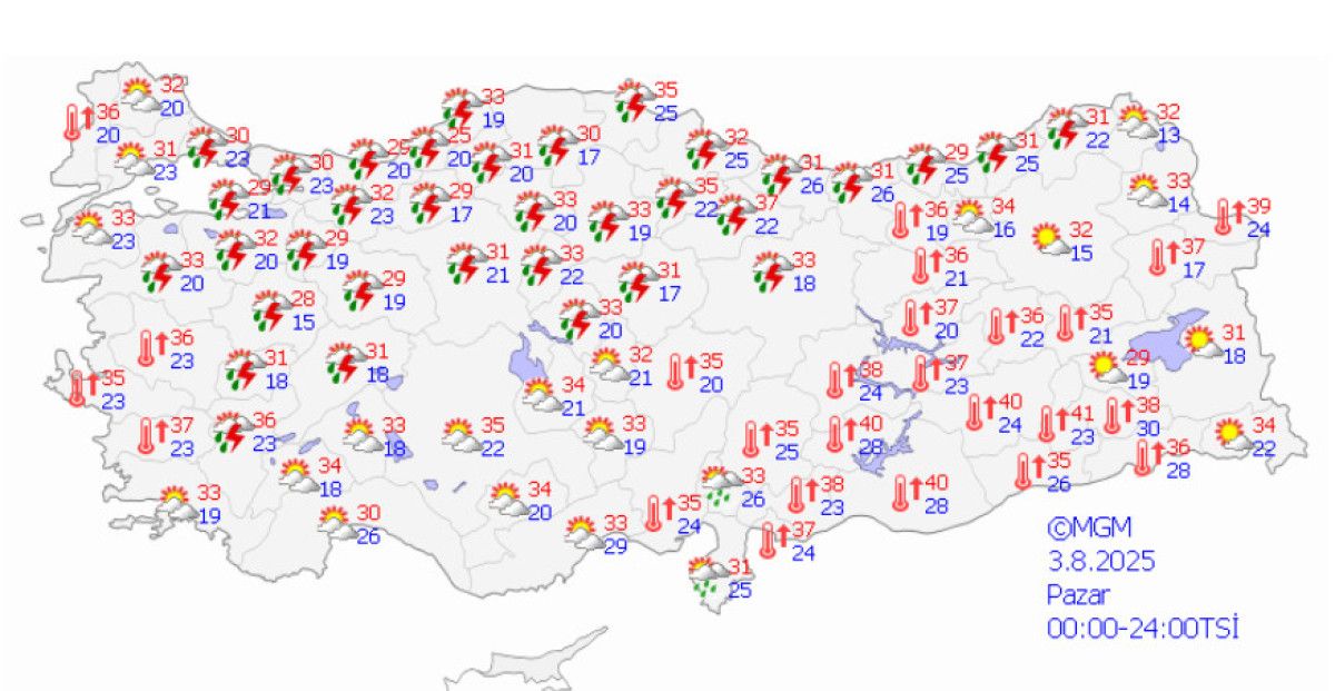 Trakya, Batı Karadeniz, Orta ve Doğu Karadeniz kıyıları ile Kocaeli, İstanbul, Sakarya, Yalova, Bursa, Balıkesir’in kuzeyi, Çanakkale’nin doğusu, Kütahya, Adana’nın kuzey ve doğusu, Kahramanmaraş’ın batısı, Hatay kıyıları, Artvin, Kars ve Ardahan etraflarında mahallî olmak üzere sağanak ve gök gürültülü sağanak yağışlar görülecek.