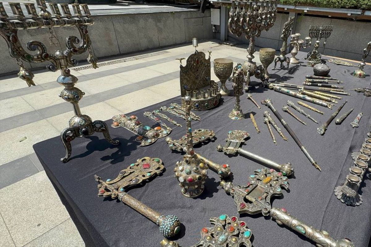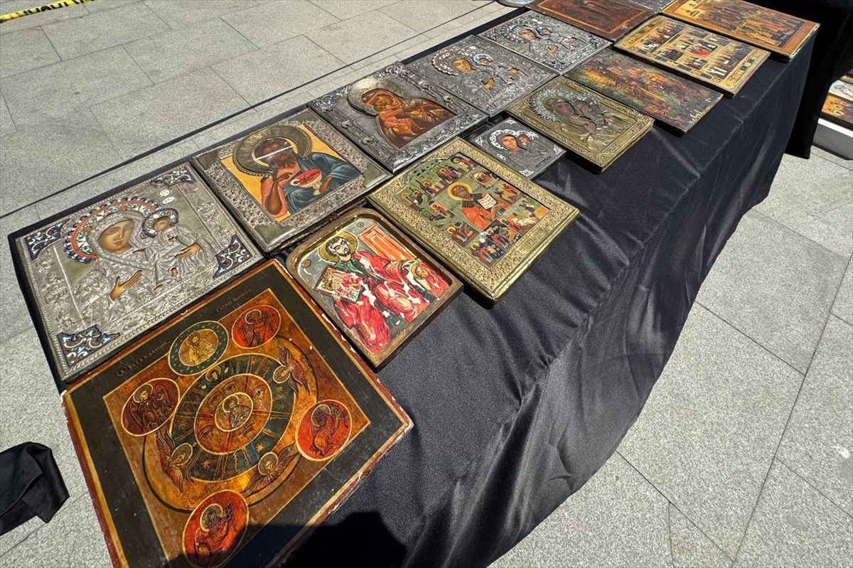 Ele geçirilen eserler, İstanbul Emniyet Müdürlüğünün bahçesinde sergilendi.