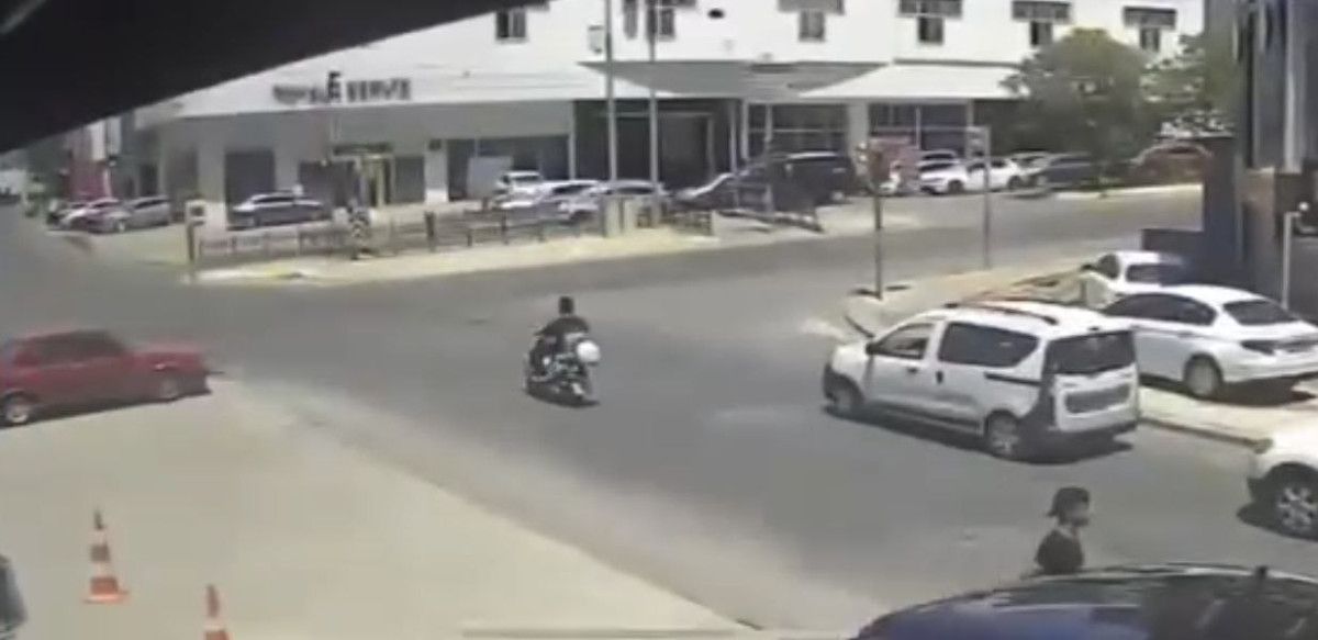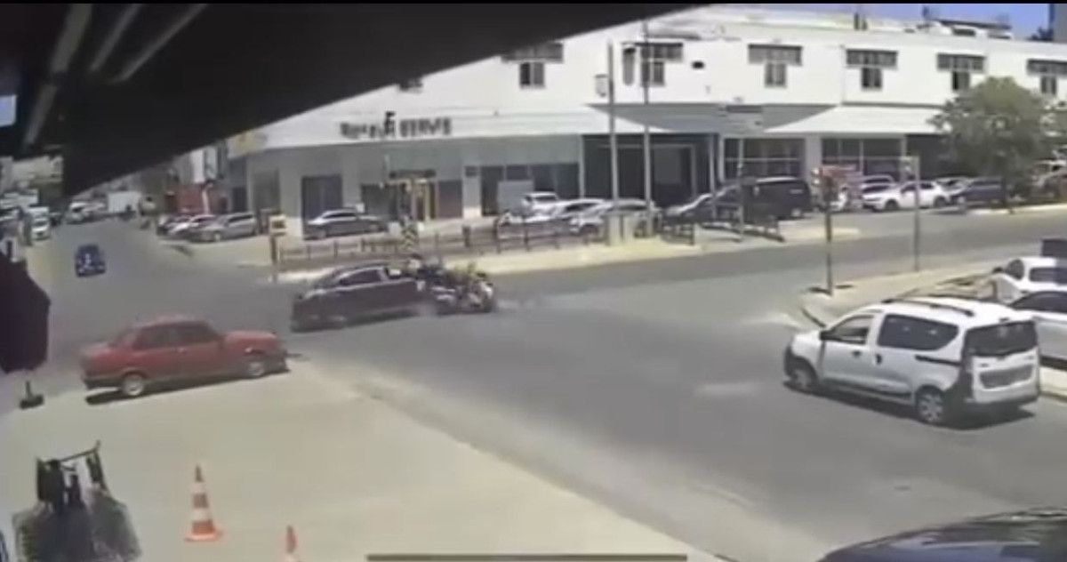 Yeşil ışık yandığı için yoluna devam eden araba ile ışık ihlali yaparak denetimsiz halde yola çıkan motosiklet çarpıştı.