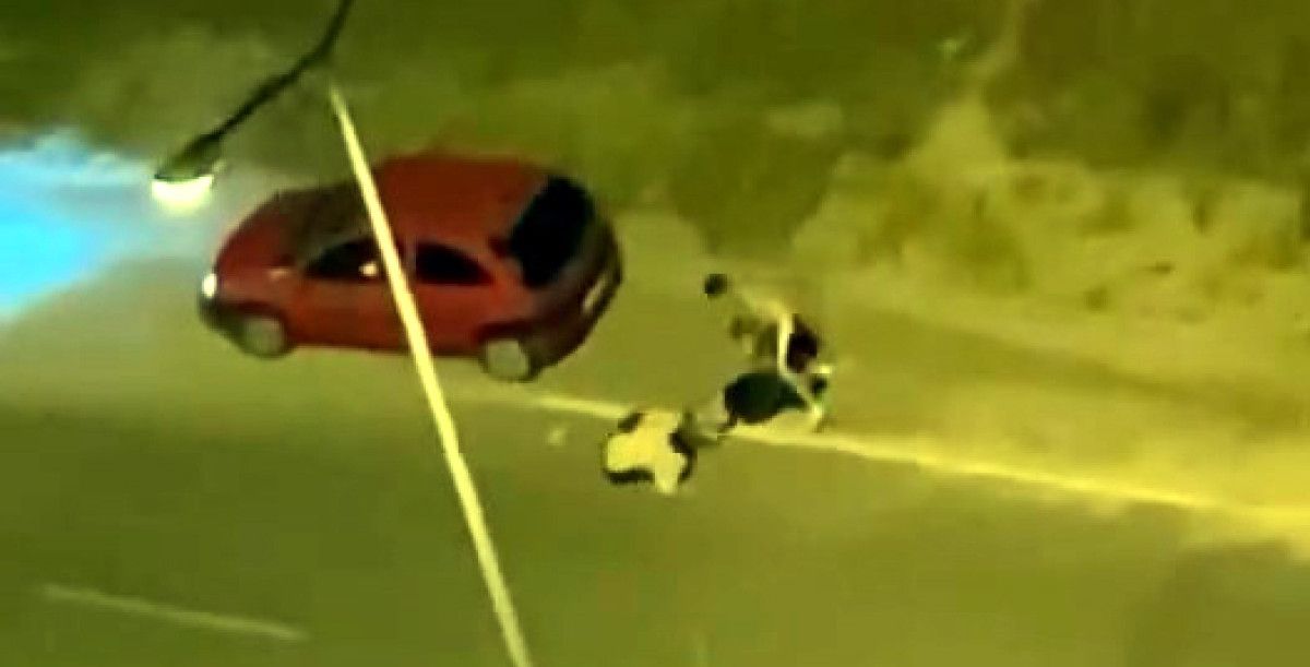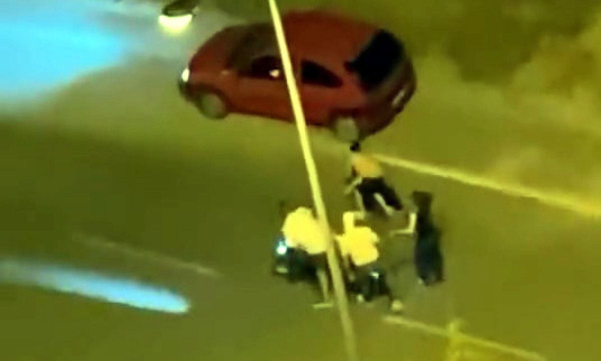 Hemen yakındaki bir site sakini tarafından cep telefonu ile kaydedilen imajda; araçta bulunan bayan da bu bireyleri ayırmaya çalıştı.