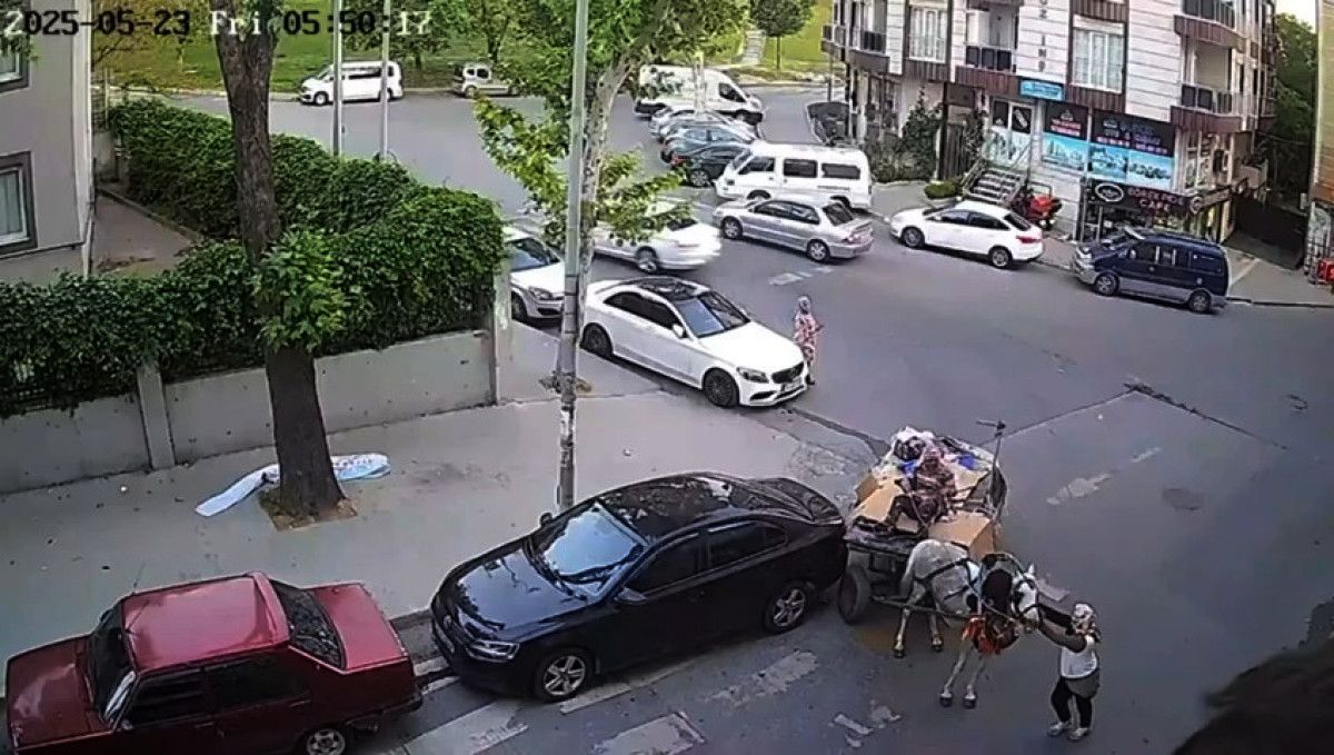 İstanbul Esenyurt’ta atık toplayan bayanın kullandığı at arabası, süratle sokağa girmeye çalıştı.