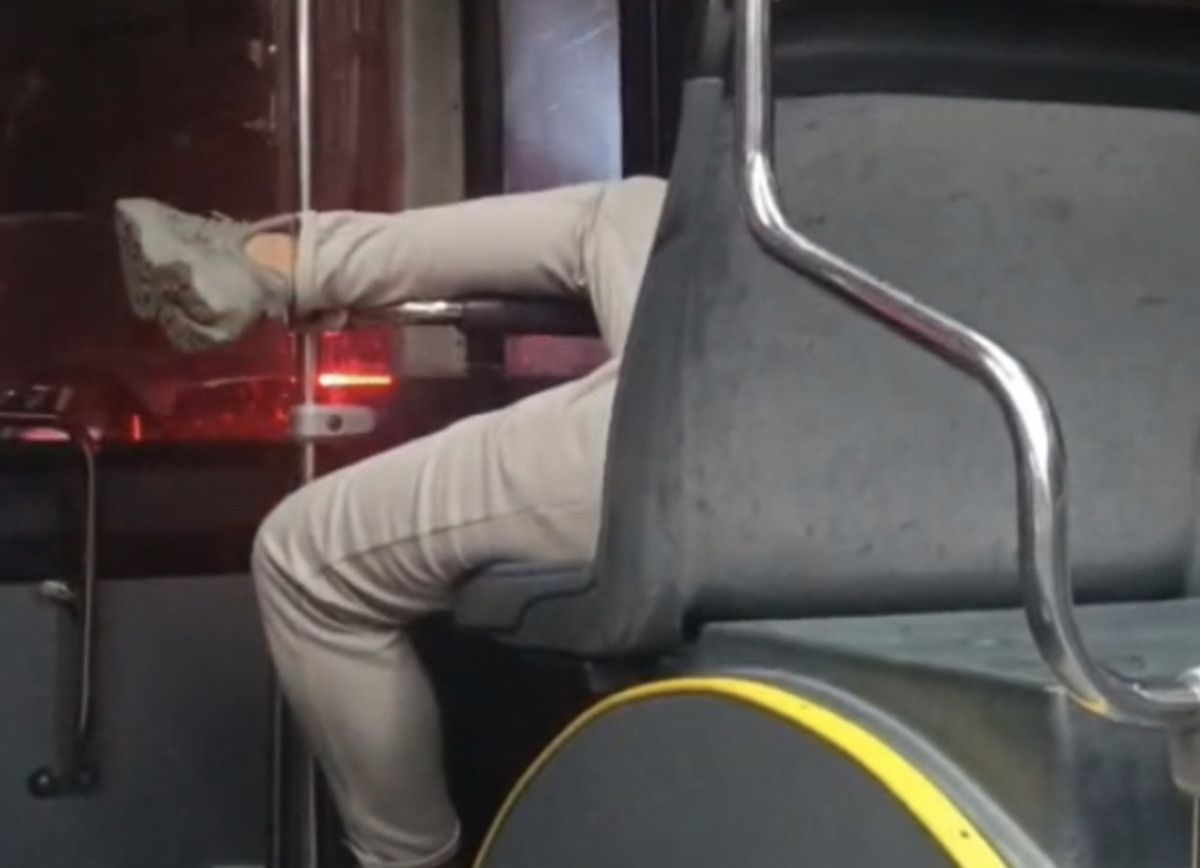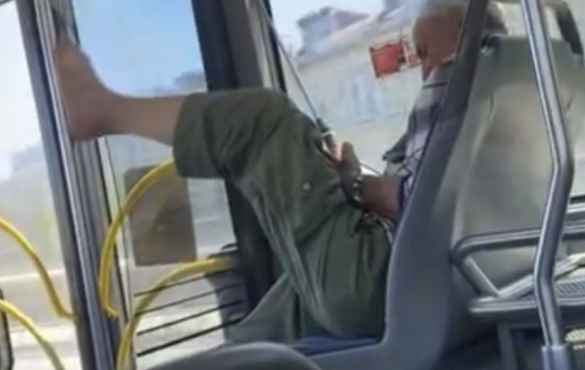 Görüntülerde, bir yolcunun otobüs içinde ayakkabısıyla birlikte ayağını önündeki tutunma borusuna dayadığı görüldü.