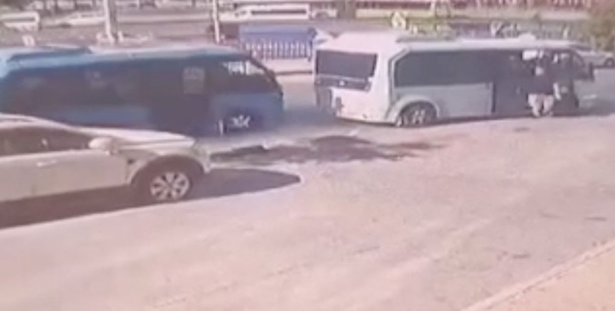 Kayıtlarda, yolcu indirmek için duran minibüse arttan gelen başka minibüsün çarpması ve yolcuların yaşadığı kaygılı anlar yer alıyor.