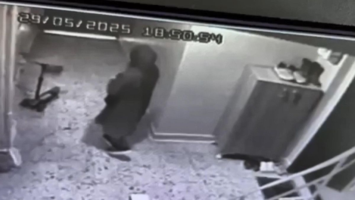GÜVENLİK KAMERASINI GÖRÜNCE YÜZÜNÜ KAPATTI