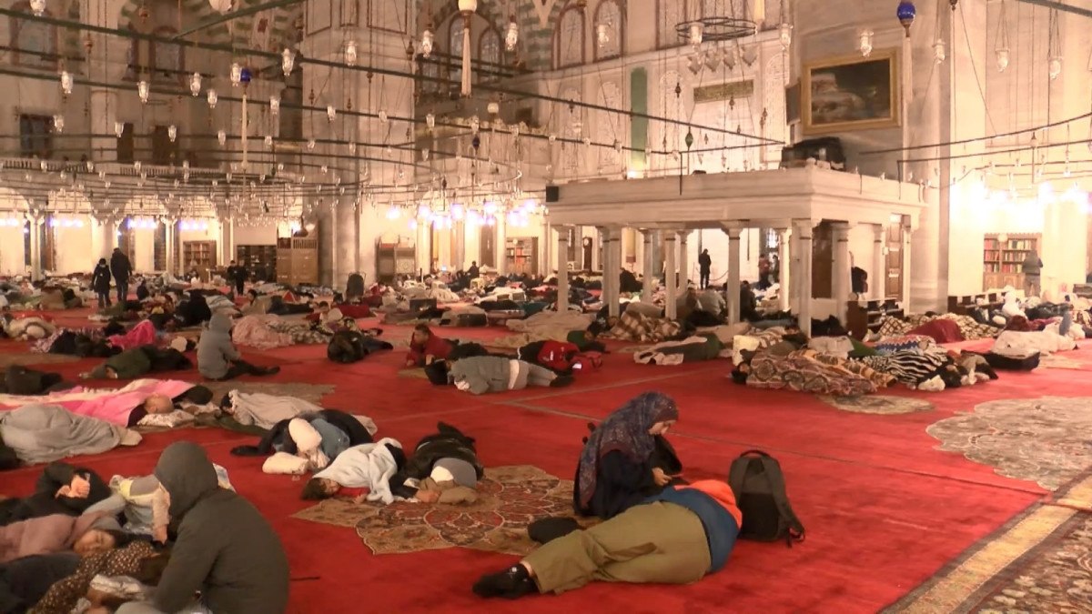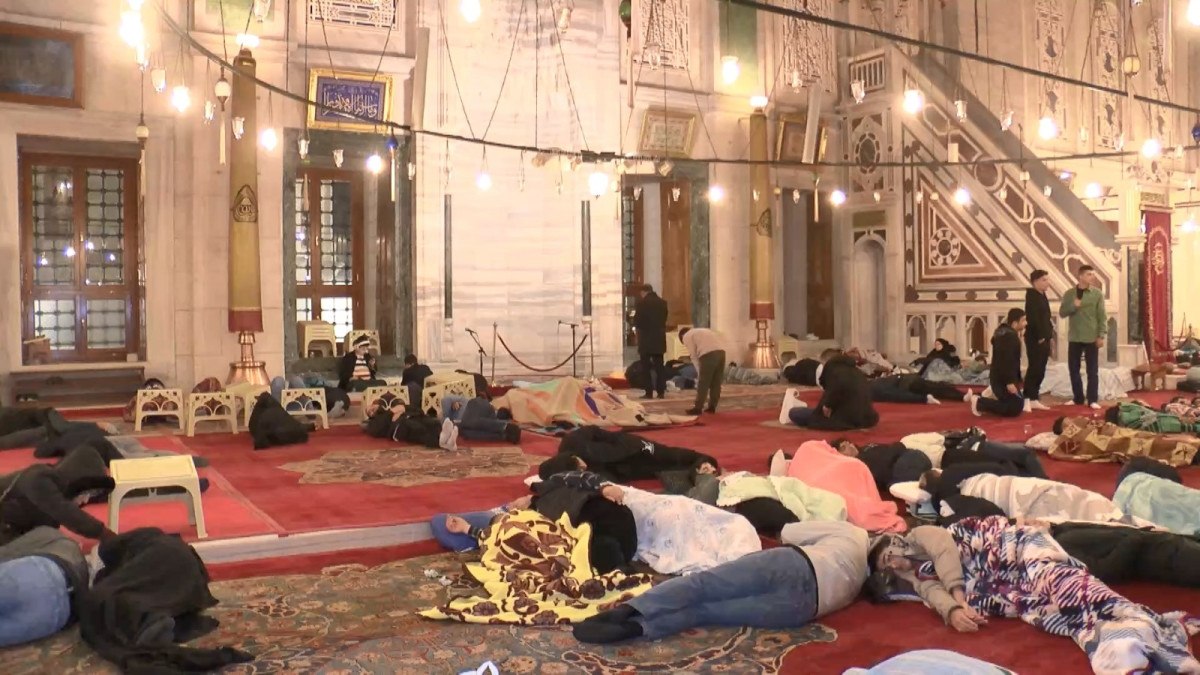 Fatih Camii’ne gelen onlarca kişi, cami içinde ve avlusunda uyudu. Bazı kişilerin banklarda uyuduğu görülürken, bazı kişilerin ise cami bahçesine çadır kurduğu görüldü.
