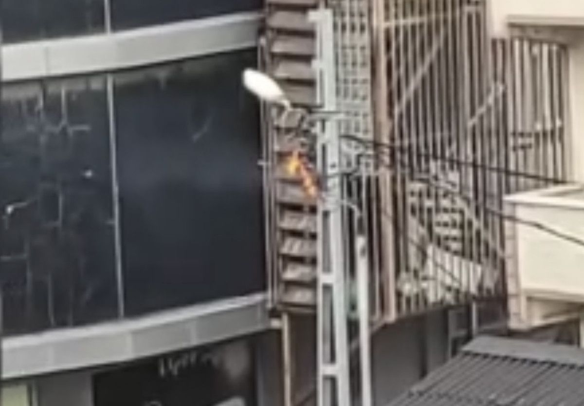 Alevlerin sardığı elektrik telleri, bomba sesine misal halde patlamaya başladı.