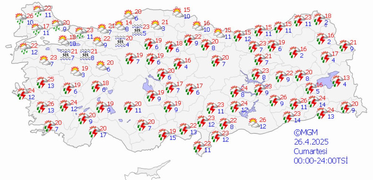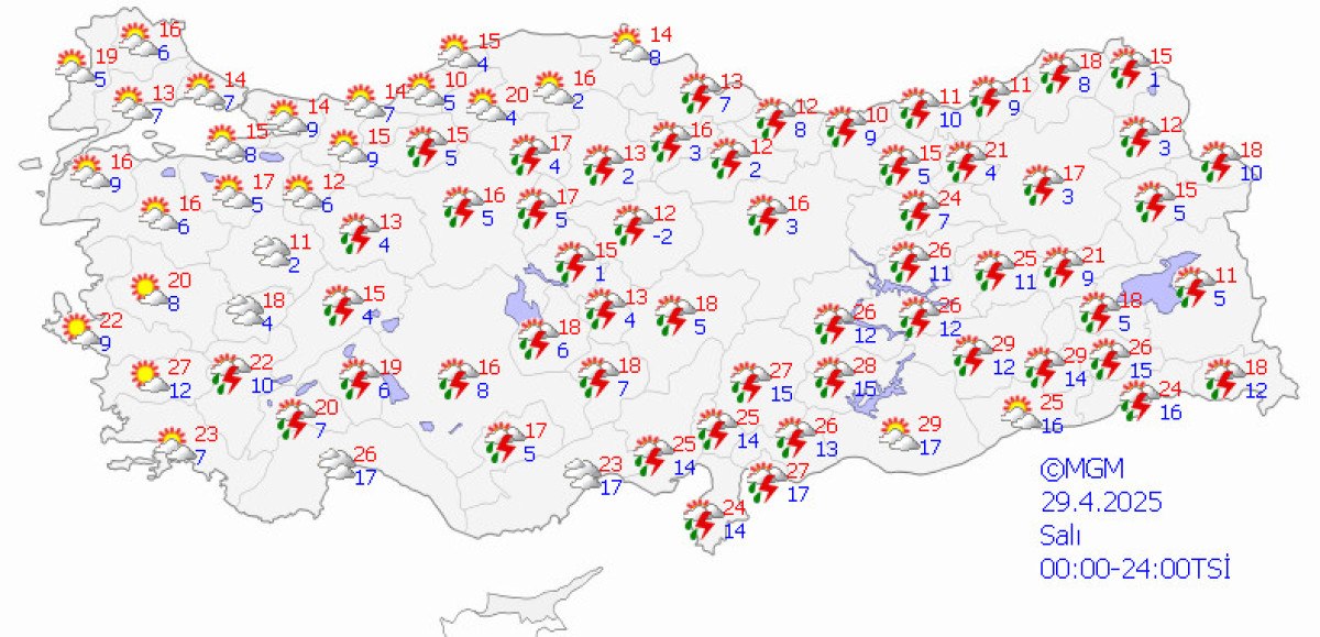 Sıcaklığın mevsim normallerinin altına ineceği aktarılırken rüzgarla yer yer sağanak ve kısa süreli gök gürültülü yağışların da etkili olacağının tahmin edildiği bildirildi.