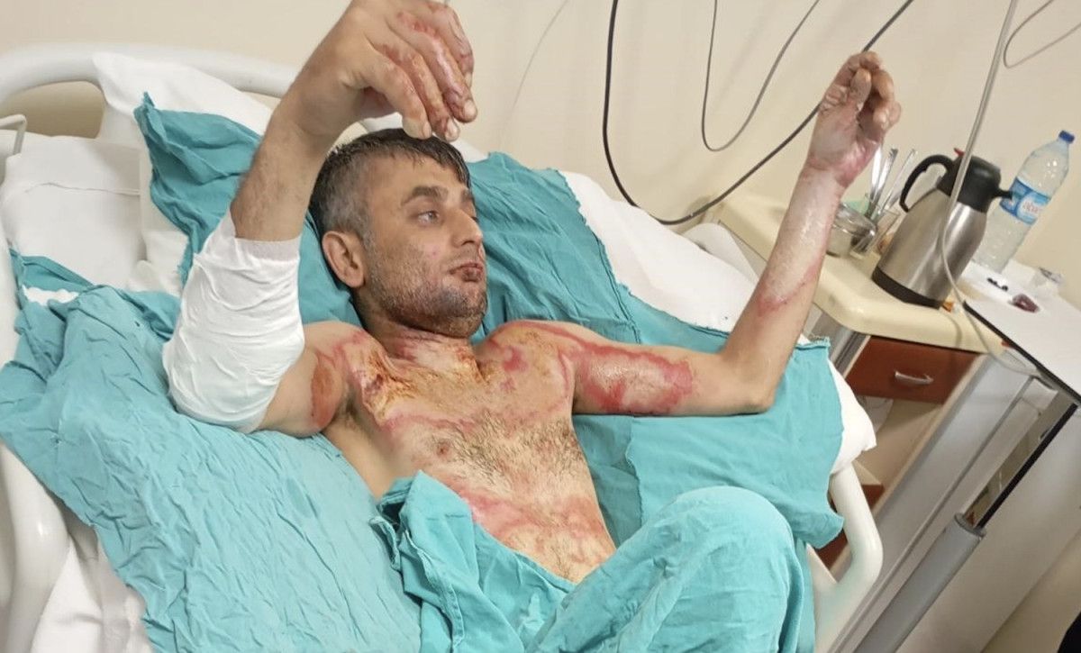 Vücudunun büyük bir kısmı yanan Ahmet Sanduvaç, yarı çıplak bir halde konutuna geldi.