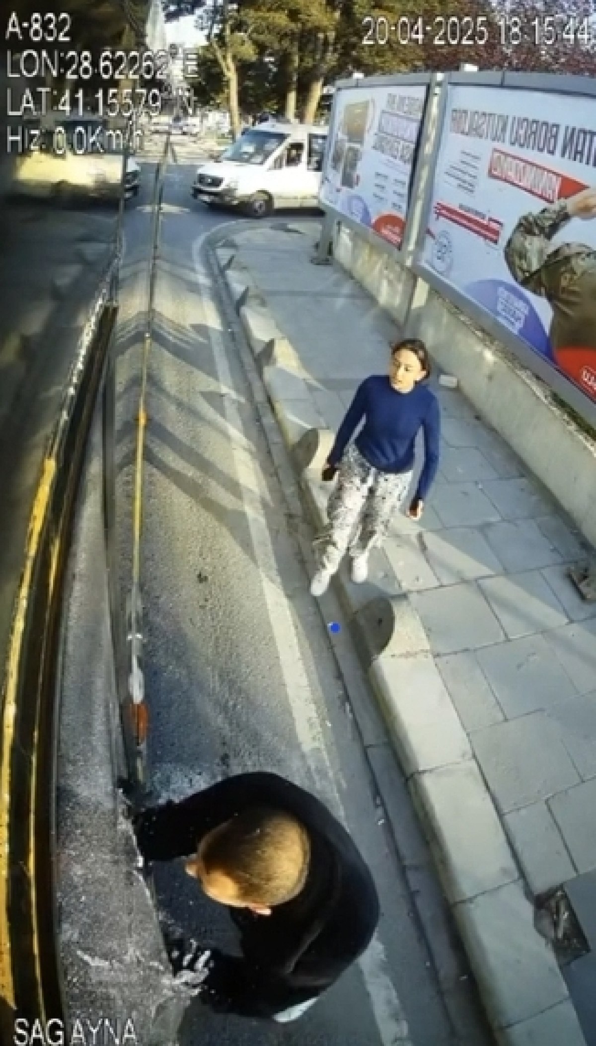 Görüntülerde, trafikte duran otobüsün arkasındaki otomobilden inen 2 kişinin otobüse doğru koştuğu, şoförle tartıştıktan sonra şüphelilerden birinin otobüsün camına vurup kırdığı anlar yer alıyor.