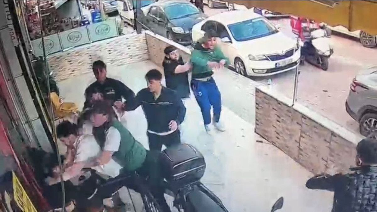 İki taraf ortasında yaşanan kısa bir tartışmanın akabinde üstünde beyaz bir gömlek bulunan şüphelinin yumruk atmasıyla arbedenin başladığı görülüyor.