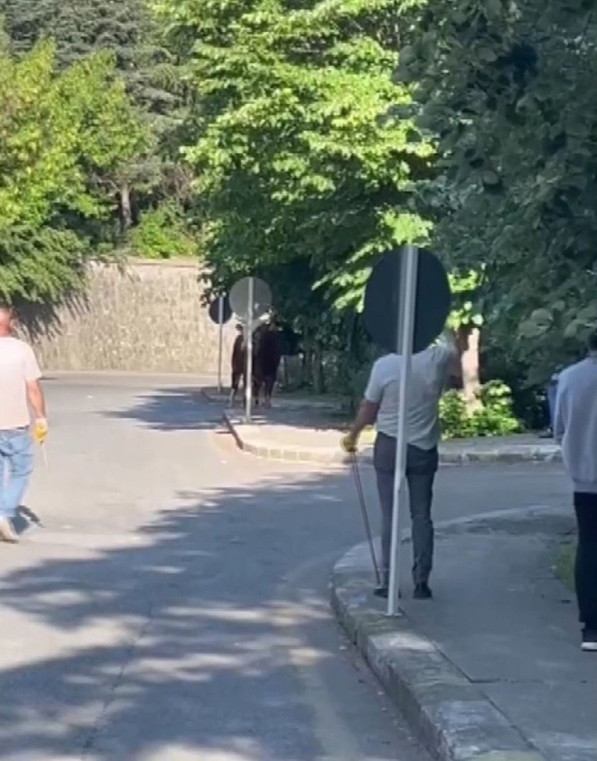 Kurbanın sahibi ve etraftakiler, paniğe neden olan boğayı yakalamak için seferber oldu.