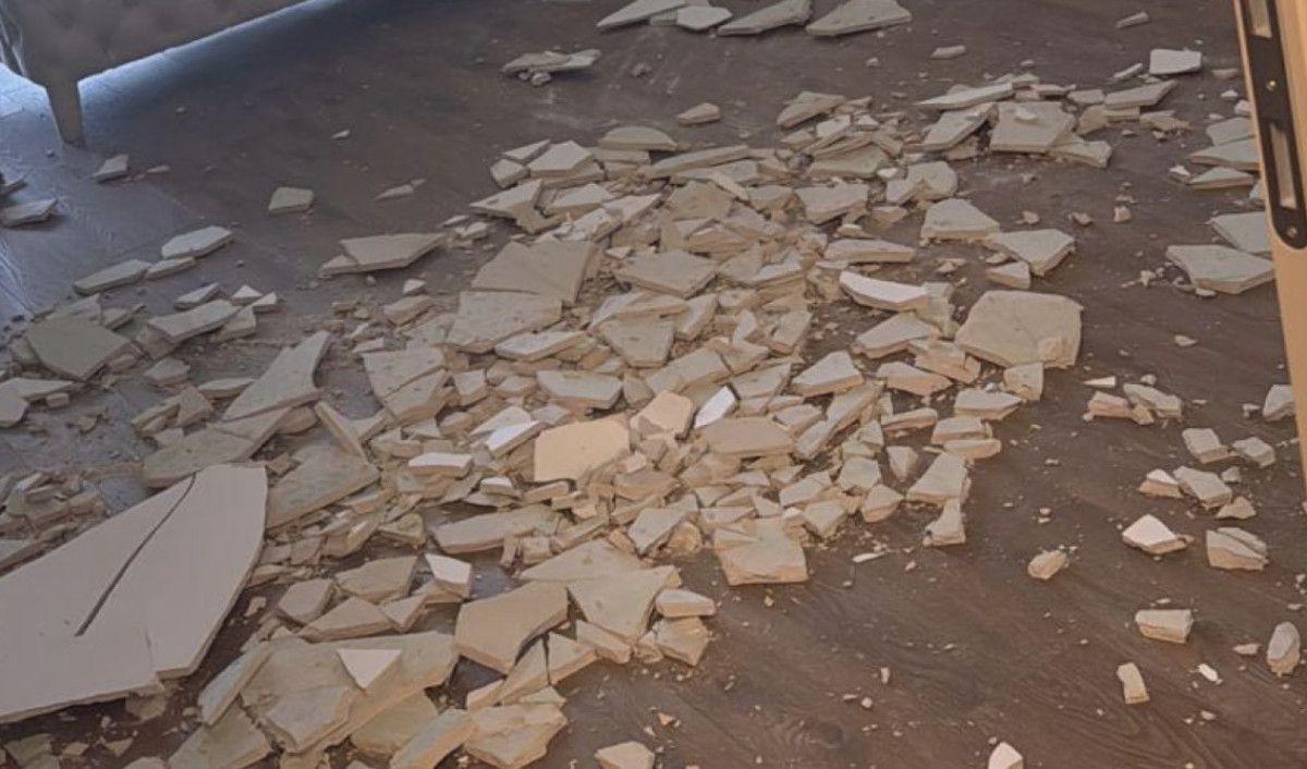 Olayla ilgili konuşan Tuğçe Alpay, “4 gün evvel çok şiddetli bir sesle uyandık. Salona geldiğimde bütün tavanın yere düştüğünü gördüm. Birinci yaptığım şey yere eğilip aldığım taşın tartısına bakmaktı. Muhtemelen 1 saat sonra bu olay olmuş olsaydı, çok daha makus bir biçimde sonuçlanacaktı” dedi.