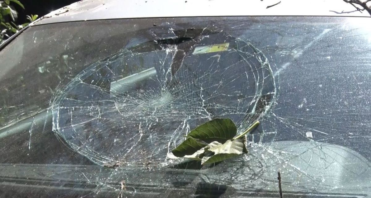 Kurumuş bir ağacın kolu koparak park halindeki Volkswagen marka bir aracın üzerine düşerek, camın hasar görmesine neden oldu.