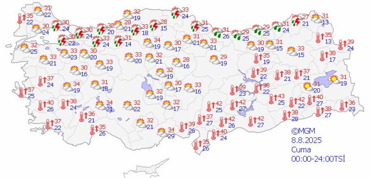 Ancak birtakım vilayetlerde sağanak yağış ve gök gürültülü yağışlar tesirini gösterecek.
