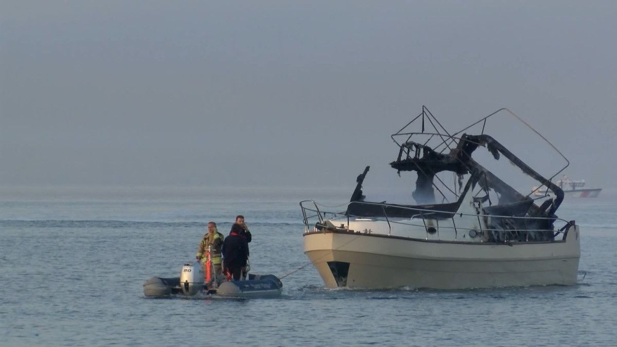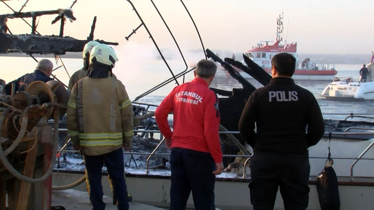 Tekneden yükselen alevlerin yükseldiğini görenler, yangını söndürmek için uzun müddet efor gösterdi.