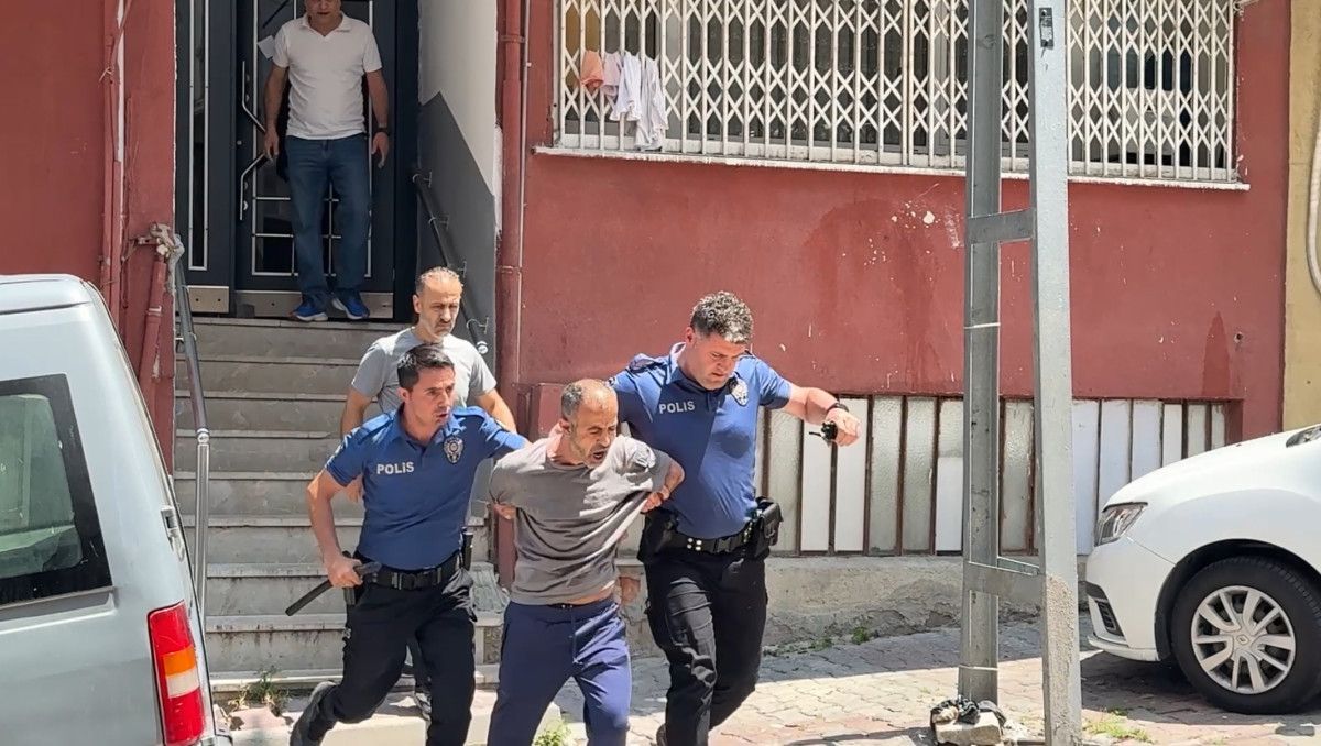 Şüpheli polis aracına götürülürken de bağırmayı sürdürdü.