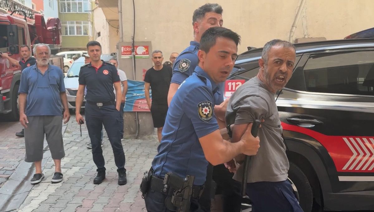 Bu sefer polis takımları dairede yangın çıkaran şüpheliyi gözaltına almak istedi.