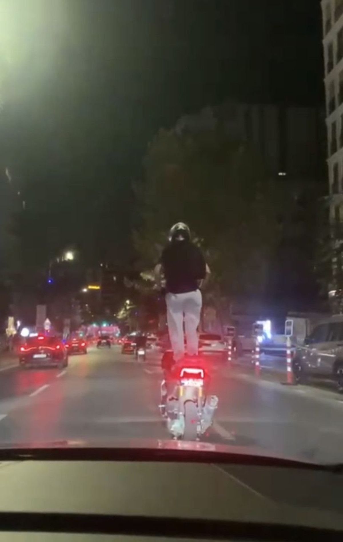Bağdat Caddesi’nde yaşanan olayda motosiklet şoförü, trafikte seyir halindeyken motosikletinin üzerinde ayağa kalkarak tehlikeli hareketler yaptı.