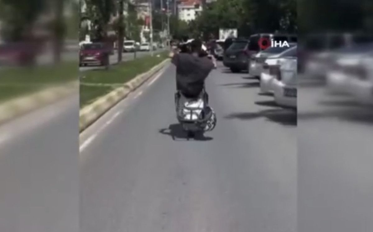Olayda, şoför, motosikletle seyir halindeyken tek teker üstünde giderek akrobatik hareketler yaptı.