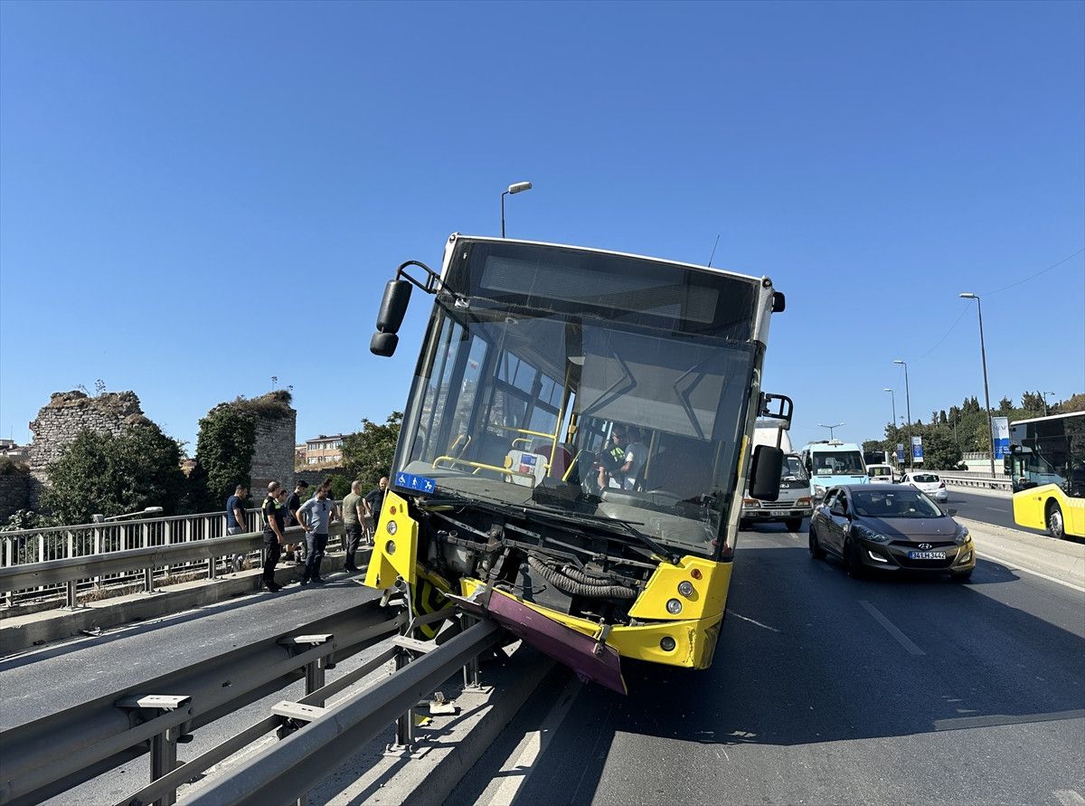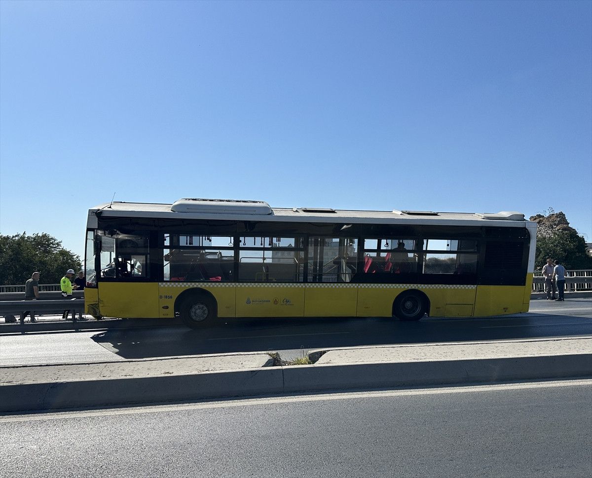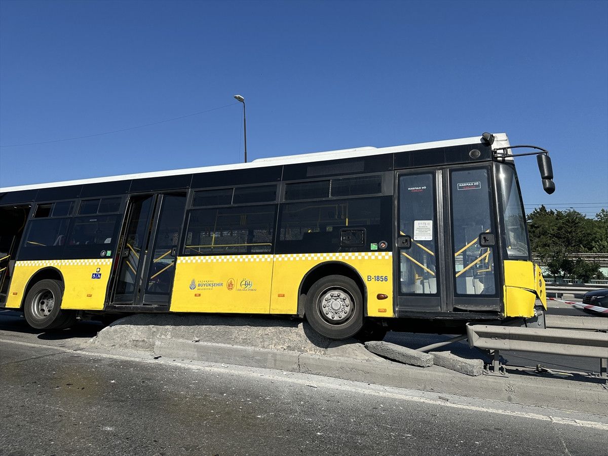 İstanbul’da seyir halindeki İETT otobüsü, çelik bariyerlerde asılı kaldı