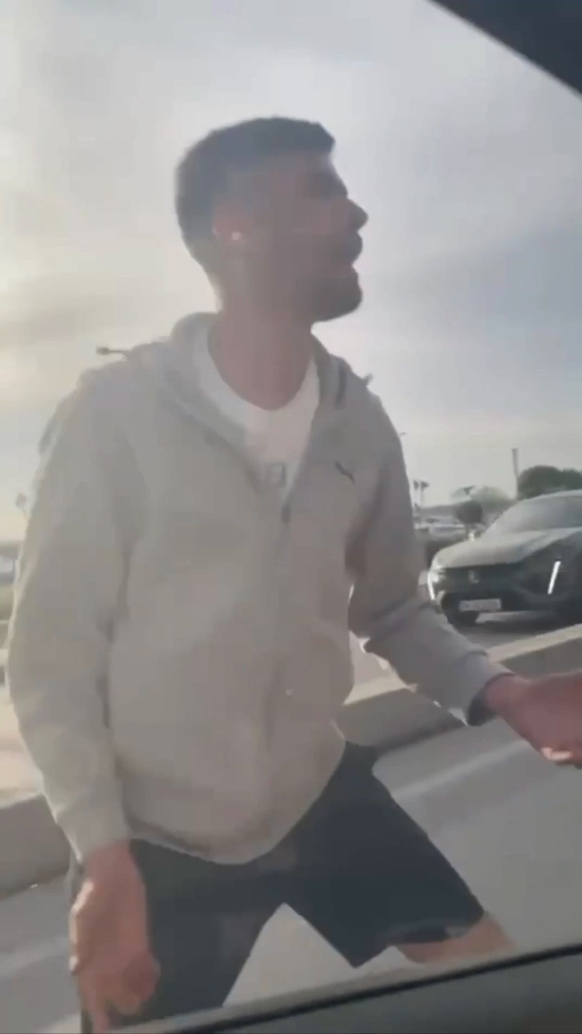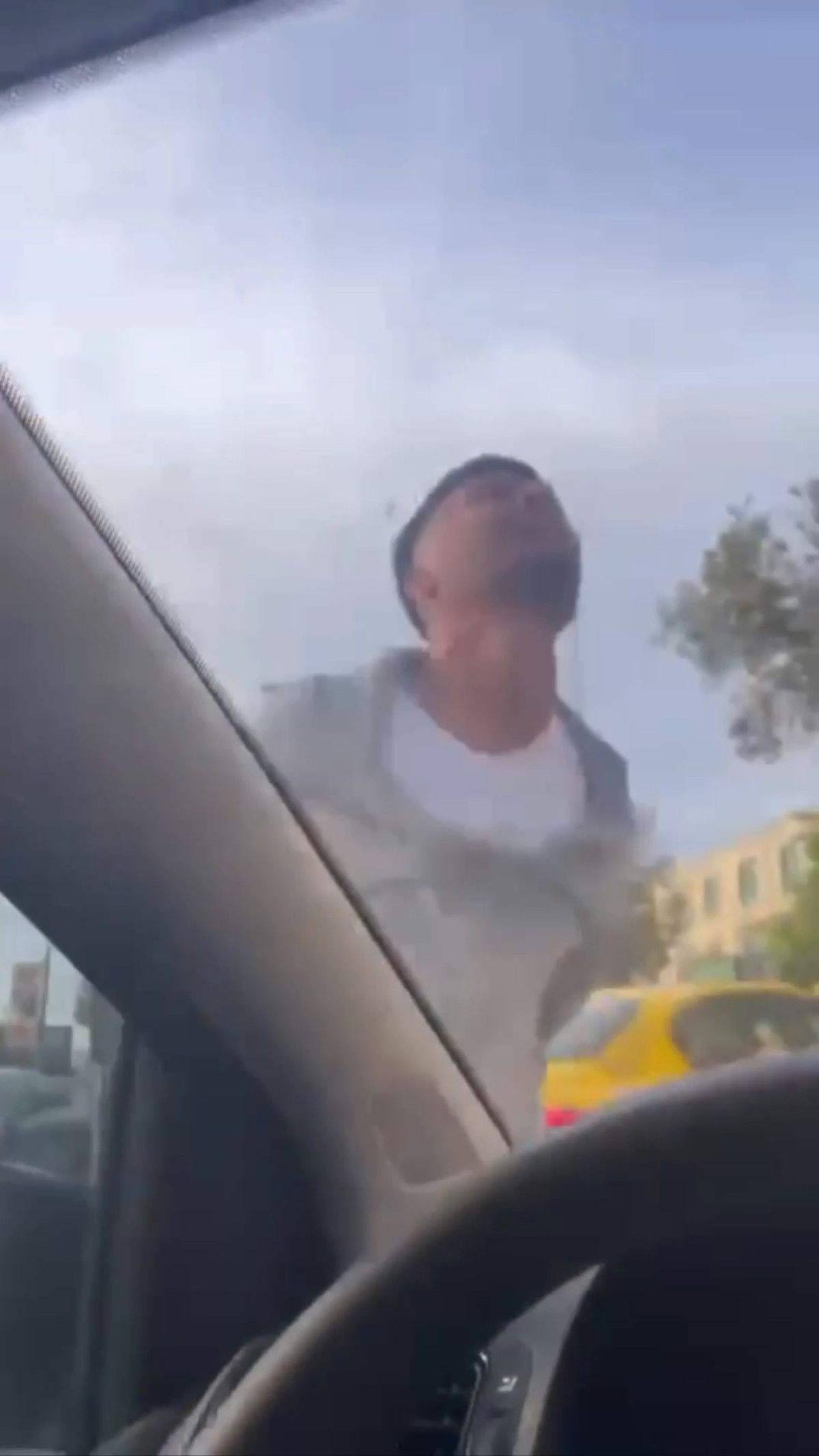 Aracını arabanın önüne çeken taksi sürücüsü, “Paramı çaldın, otomobilden in, sağa çek” diyerek reaksiyon gösterdi.