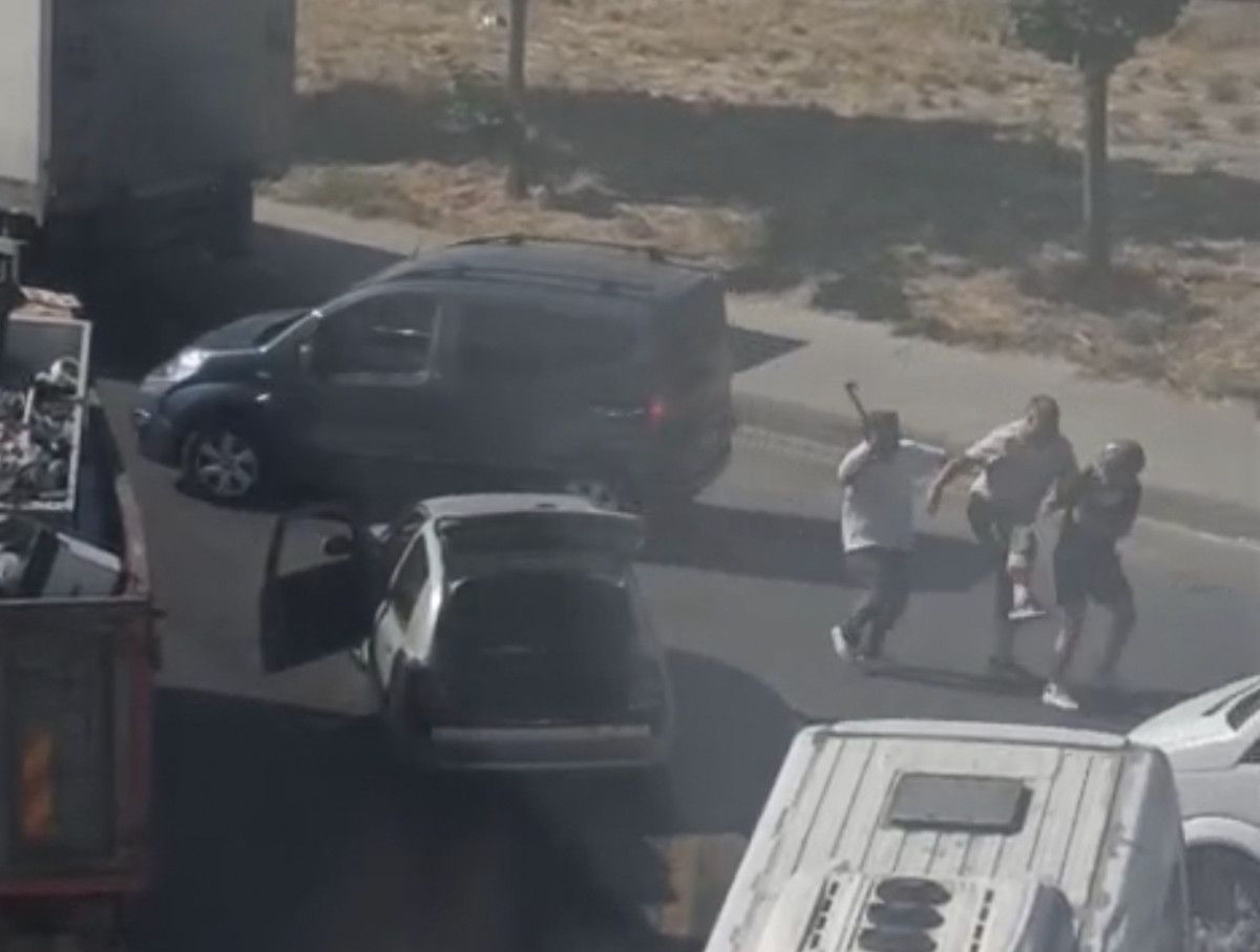 O sırada aracının bagajını açan araba şoförü, eline keser alarak karşı tarafın üzerine yürüdü.