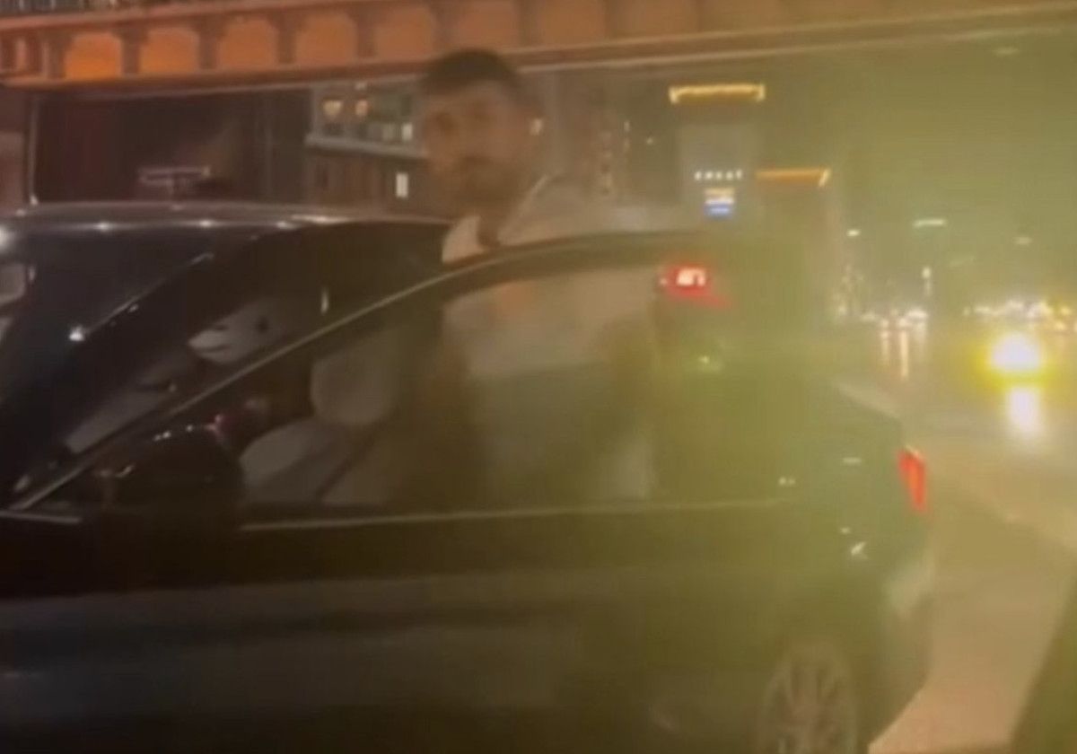 Yumruk atarak aracın aynasını kıran ve kapısını tekmeleyen kuşkulu araçtaki şoföre de küfürler yağdırdı.