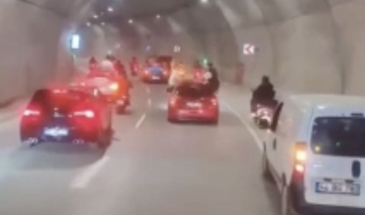 Çamlıca Tüneli’nde çok sayıda araba ve motosikletten oluşan konvoy, duraksayarak trafiği aksattı.