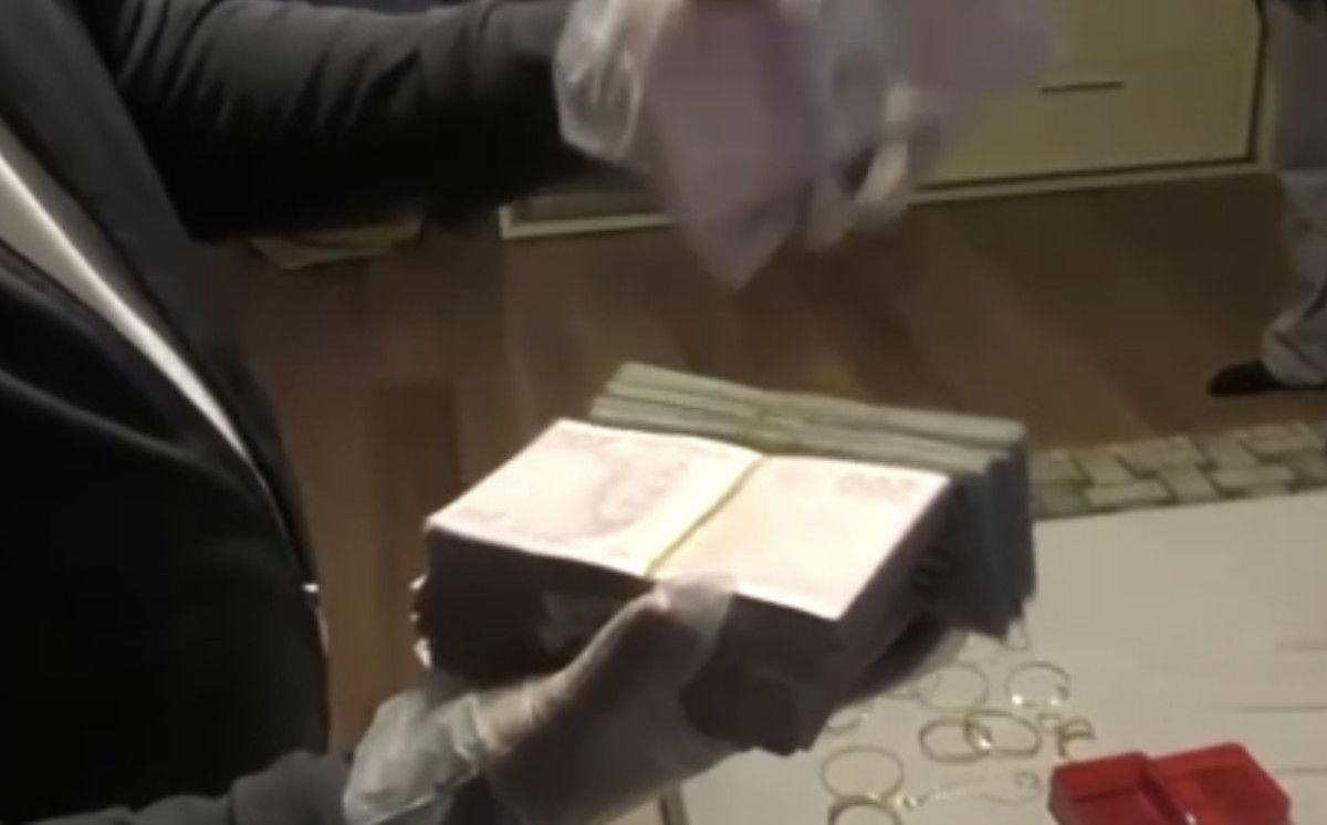 Adreslerde yapılan aramalarda ise 21 bin 100 dolar, 138 bin TL, 2 ruhsatsız tabanca, bu silahlara ilişkin 86 mermi, 5 altın bilezik, 7 altın bileklik, 2 altın kolye, 2 altın küpe, 2 altın yüzük, 1 altın kolye ucu, 1 cet altın, 2 tam altın, 14 yarım altın ve 2 çeyrek altında oluşan ziynet eşyası ele geçirildi.