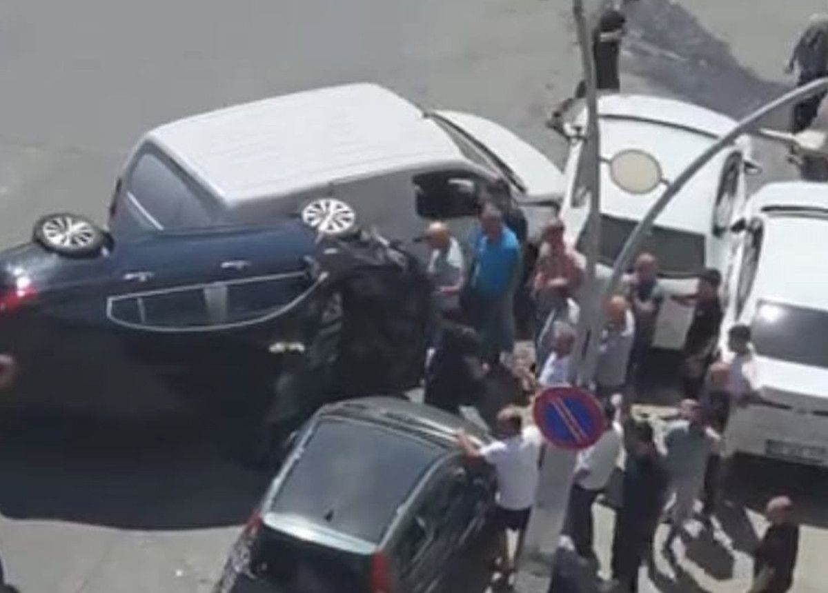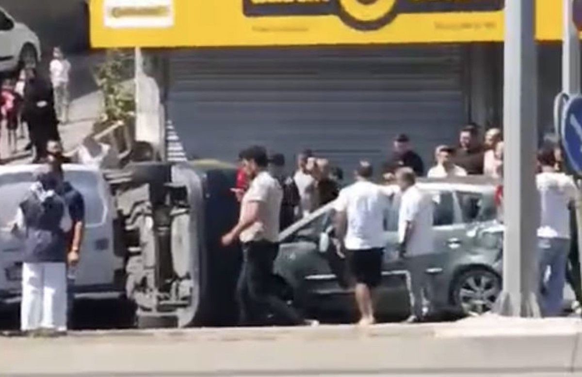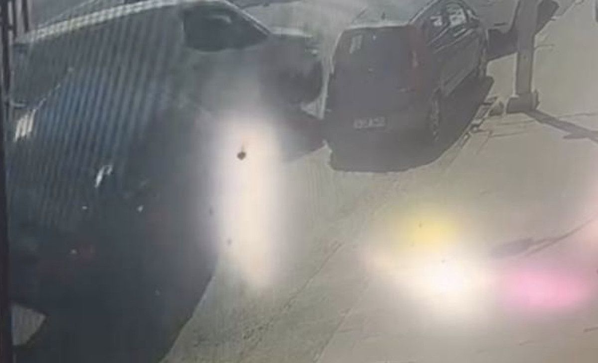 Kaza anı bir iş yerinin güvenlik kamerası tarafından kaydedildi.