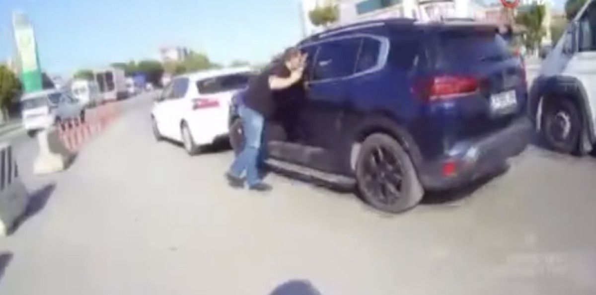 Tartışmanın büyümesi üzerine aracından inen şoför öteki şoförün yanına gitti, küfür ederek saldırmaya başladı.