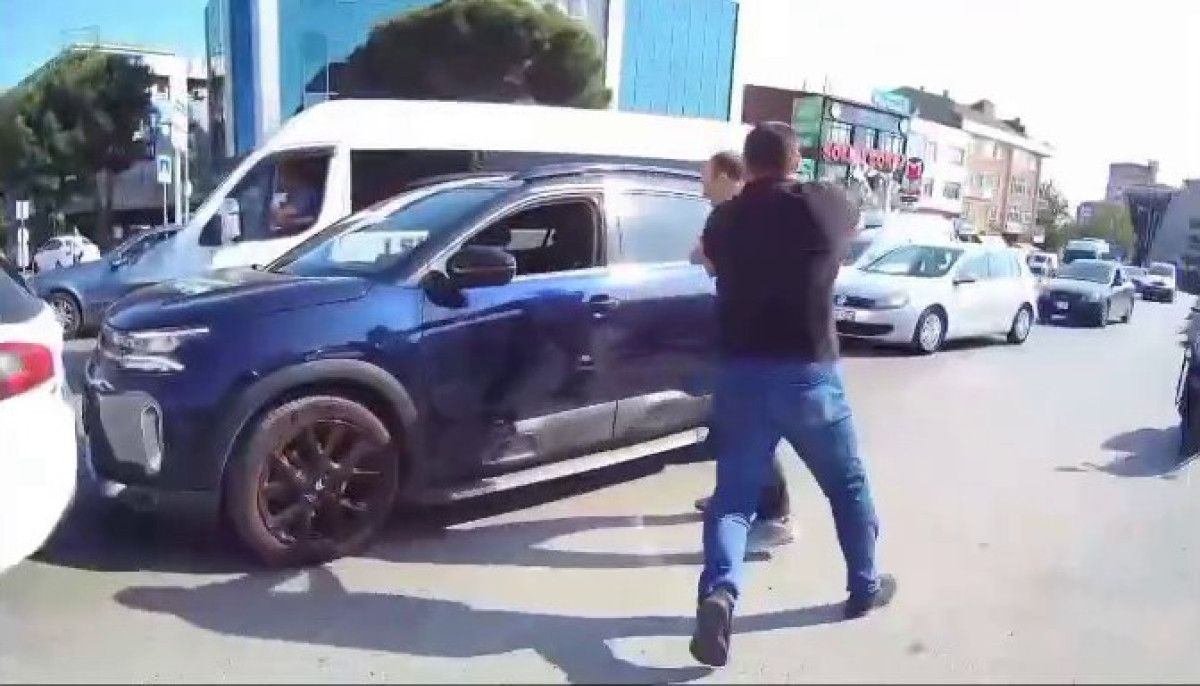 Tartışmanın büyümesi üzerine aracından inen şoför öteki şoförün yanına gitti, küfür ederek saldırmaya başladı.