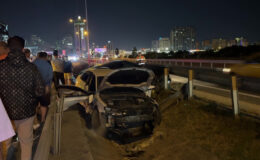 Yağış nedeniyle Arnavutköy’e giden birçok noktada araçlar yollarda kaldı. İlerleyemeyen bazı sürücüler, emniyet şeridinde bekliyor.