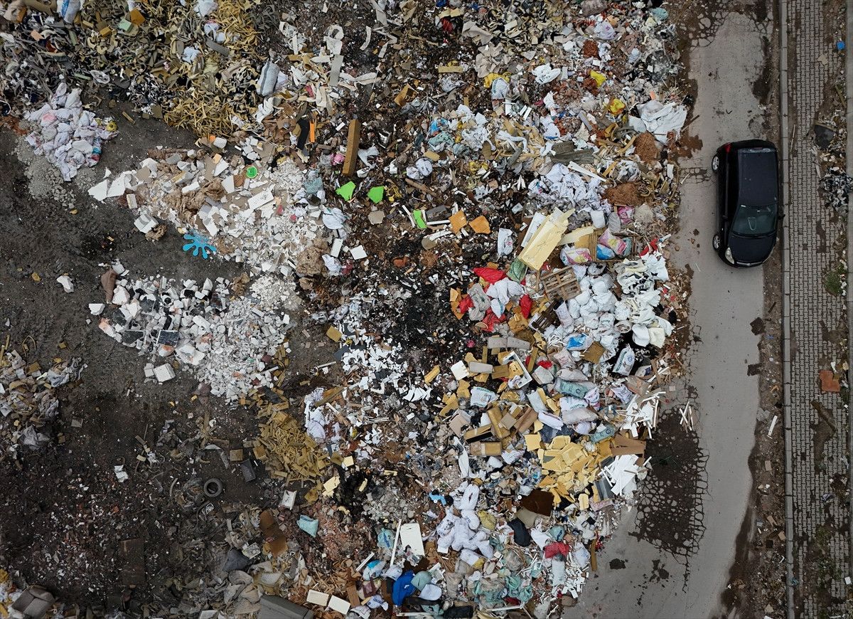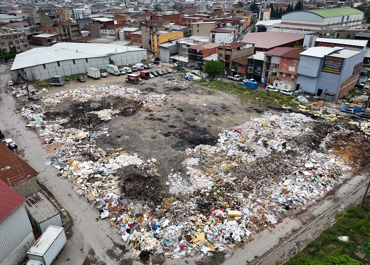 Seyhan Mahallesi 718 Sokak’ta futbol alanı büyüklüğündeki alanda, atılan plastik, dokumacılık eserleri ve moloz nedeniyle atık yığını oluştu.