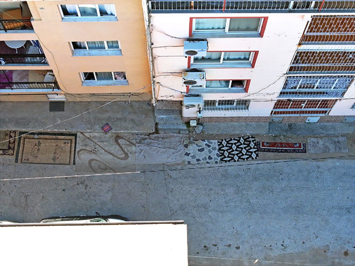 Yaz günü daima toz, araçlar geliyor, geçiyor. Beşerler çukura düşüyor. İnsanların araçları ziyan görüyor. Çocuklar oynuyor. Çocuklar bisiklete biniyor, çocuklar düşüyor. Artık bunları önlemek ismine elimizden gelen buydu. Elimizden geleni yaptık. Halı serdik. Salonda olması gereken halı yolda duruyor şu an. Daha nasıl anlatayım.